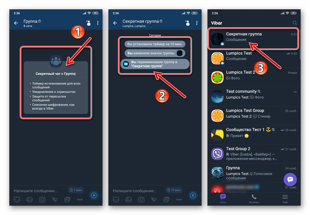 Чтобы использовать все возможности секретного чата при общении в группе участников Viber, организуйте переписку следующим образом.