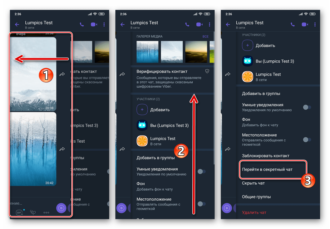 В Viber для Android создать секретное совпадение помимо основного разговора с тем или иным контактом очень просто. Помимо прочего, вы можете использовать дополнительные функции безопасности для информации, передаваемой при общении не с единственным человеком, зарегистрированным в мессенджере.