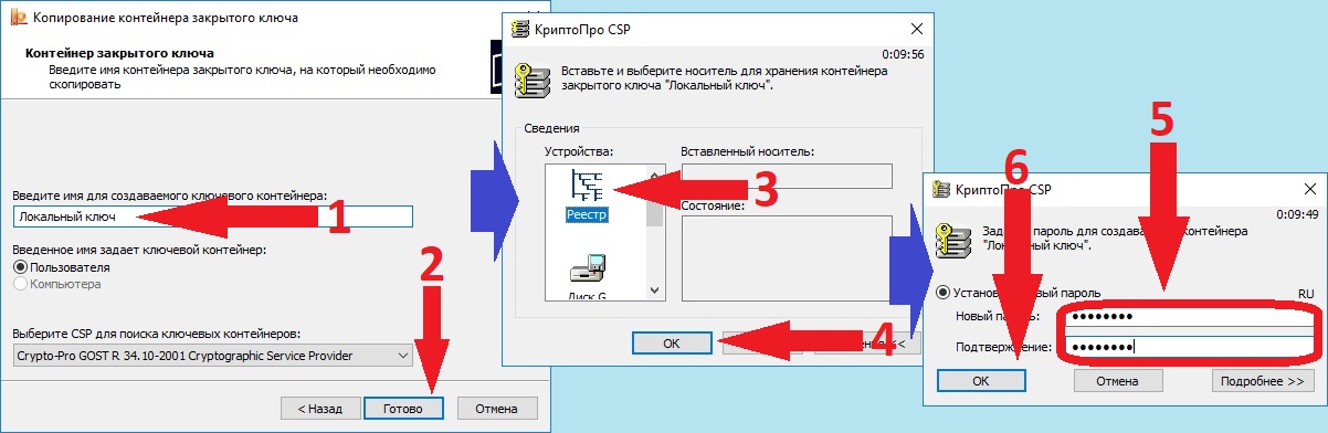 После этого происходит возврат в основное окно копирования контейнера закрытого ключа