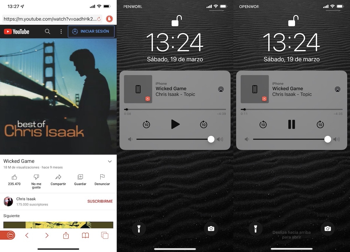 Нам просто нужно получить доступ к веб-сайту YouTube из браузера, начать воспроизведение видео, выключить экран и с заблокированного экрана, нажмите на Play управления воспроизведением возобновить его.