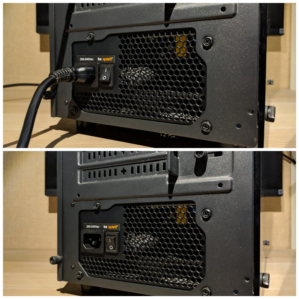 Для обесточивания «системника» тумблер БП потребуется выставить на значение 0. В независимости от его положения обязательно требуется вынуть кабель питания.