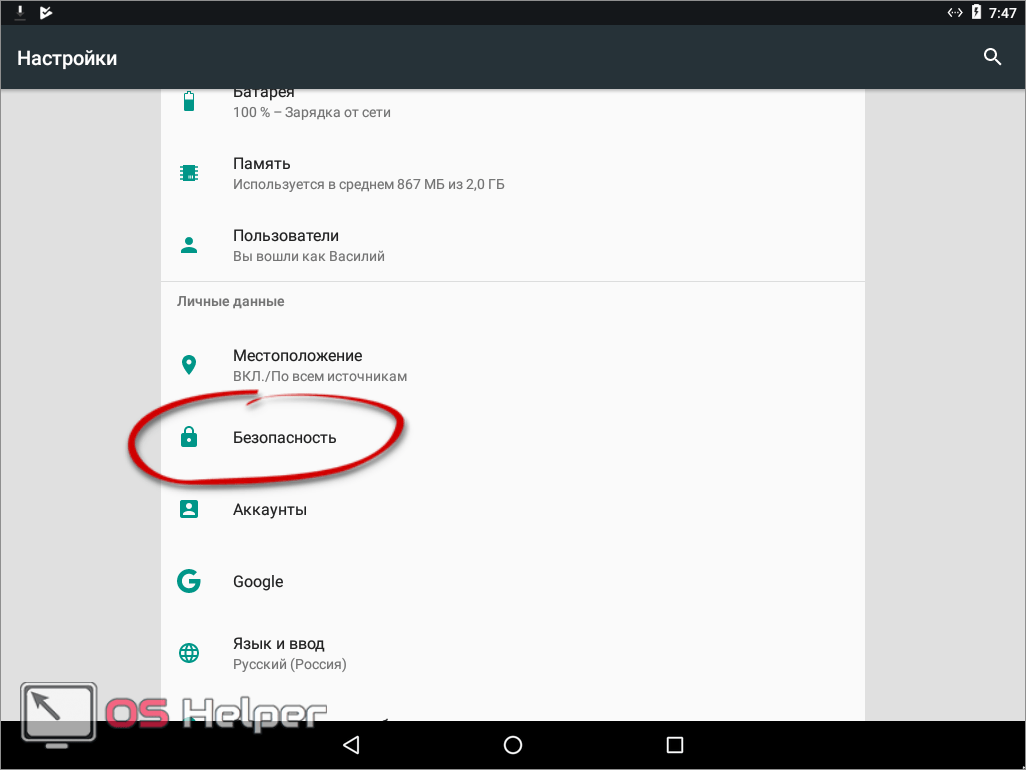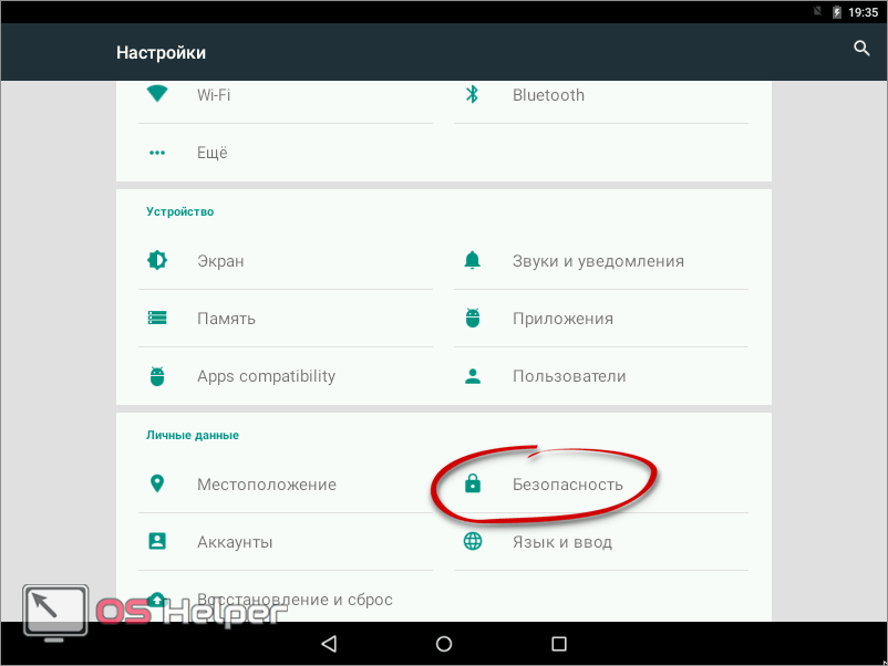 - Отыскать раздел «Безопасность», который помечен закрытым замком;