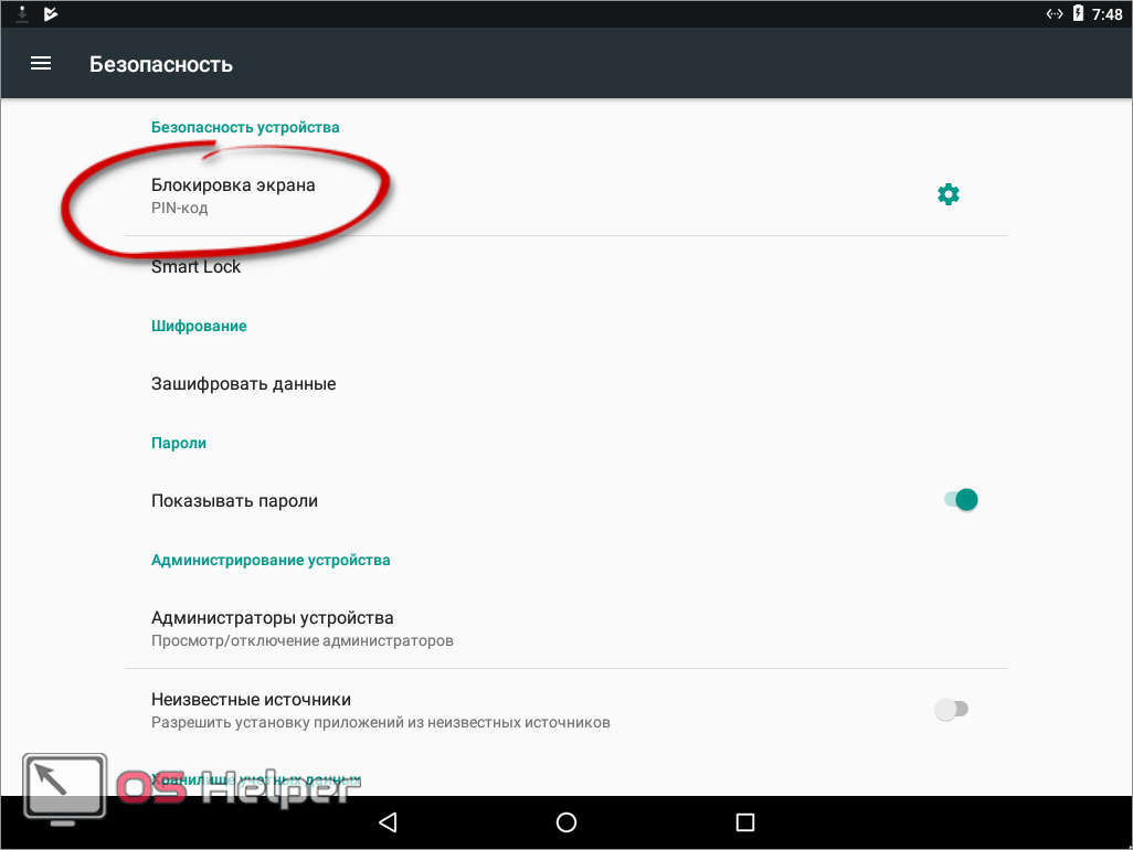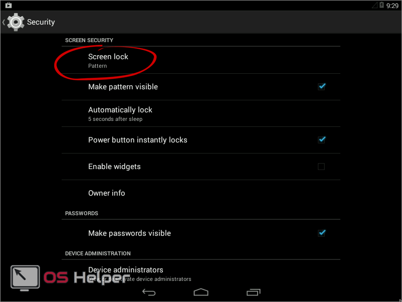 В более современных (шестой и седьмой версиях OS Android) отключение функции «Screen Lock» будет выглядеть следующим образом: