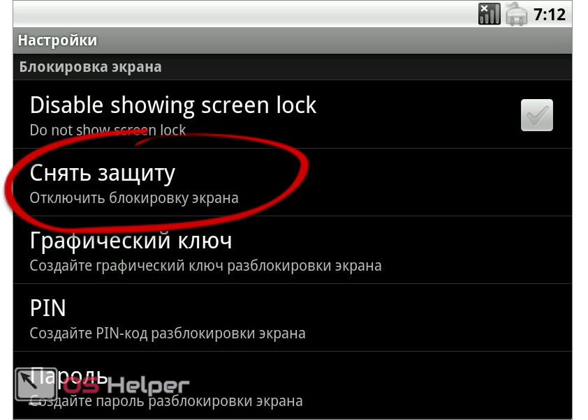 4-ый андроид – один из самых популярных ОС, установленных и по сей день на миллионах гаджетов по всему миру. Для отключения блокировки в данной системе следуйте данным шагам: