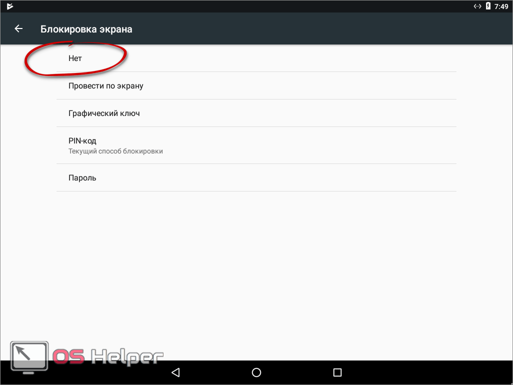 - И в последней вкладке нажмите «Нет», чтобы полностью отключить блокировку смартфона.
