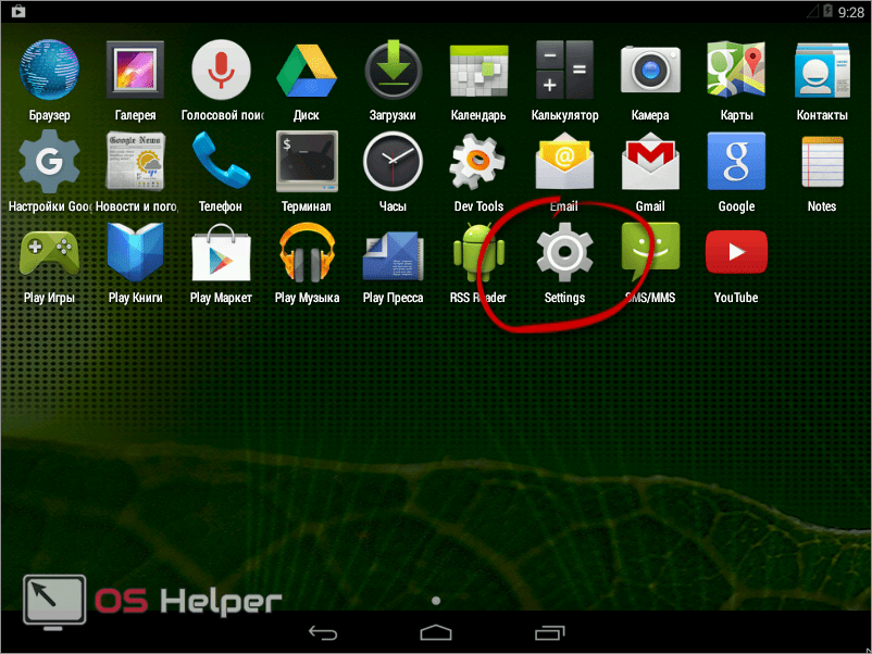 - Перейти в меню приложений, где выбрать раздел «Настройки» (иконка с шестеренкой);