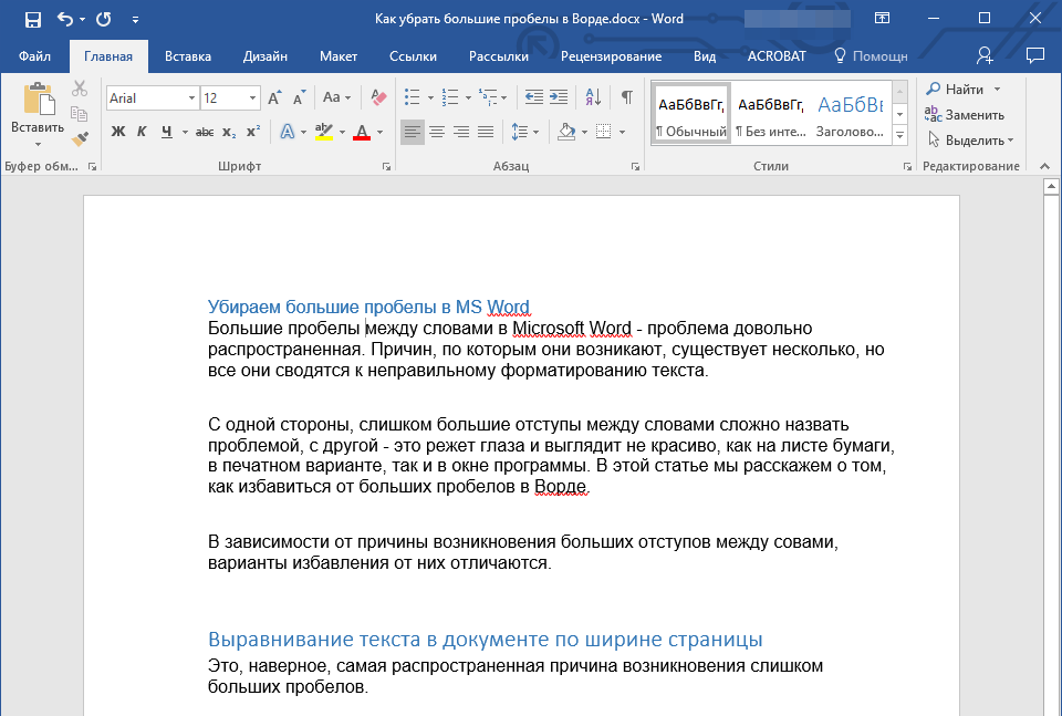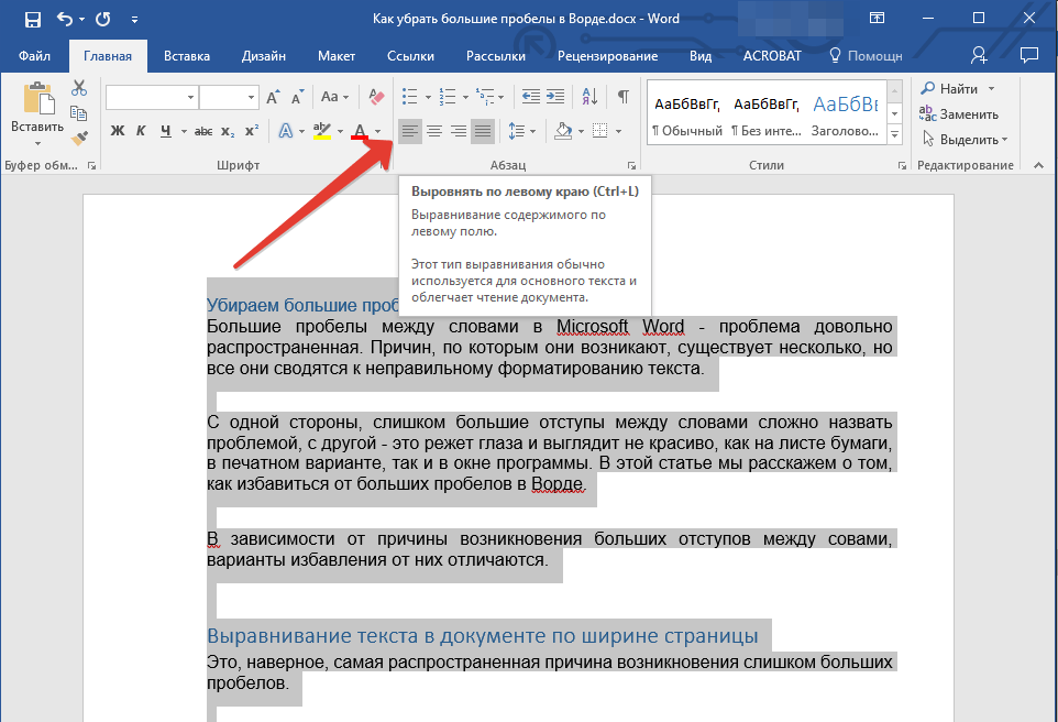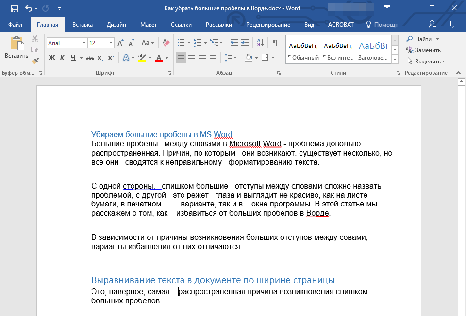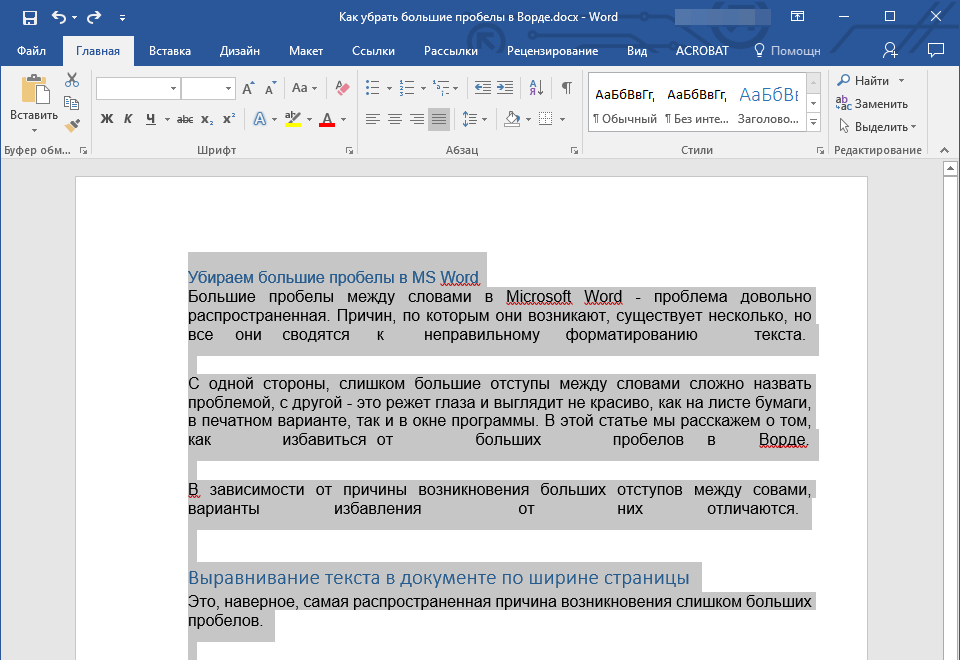 Большие пробелы между словами в MS Word — довольно распространенная проблема. Причин их возникновения несколько, но все они сводятся к неправильному форматированию текста или орфографическим ошибкам.