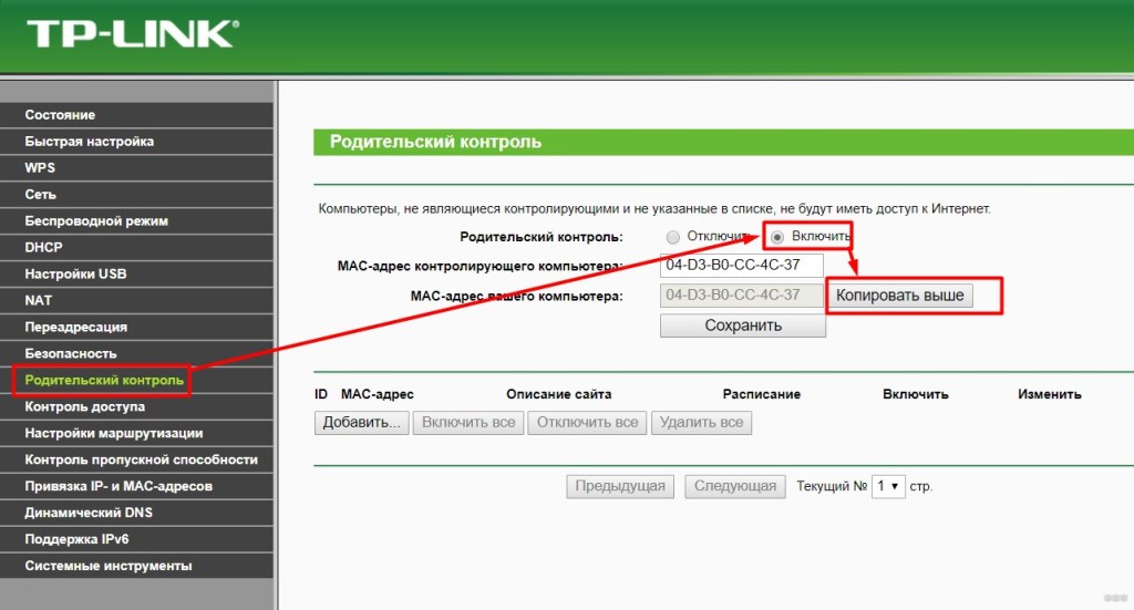 К простым методикам ограничения относят отладку при помощи роутера. На маршрутизаторах присутствуют правила входа в веб-ресурсы, которые разрешаются для посещения, остальные автоматически начнут блокироваться.
