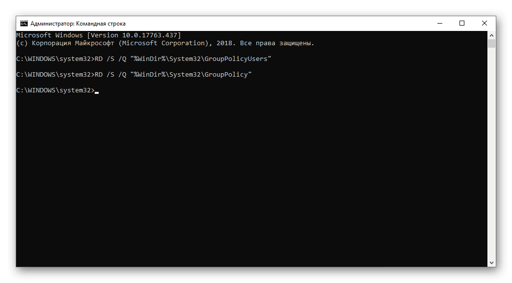 RD /S /Q «%WinDir%\System32\GroupPolicy»