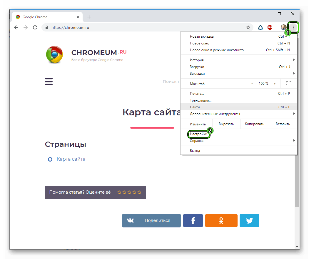 - Попасть в раздел «Настройки» можно кликнув по трем вертикальным точкам в правом верхнем углу браузера или ввести в адресной строке chrome://settings