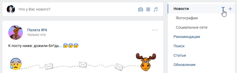 На этот раз нам понадобится запись нашего недруга в новостной ленте. Способ, к сожалению, работает не всегда. Если человек давно не публиковал новых записей на своей стене, этот способ не поможет, а значит воспользуйтесь третьим способом. Но если ваш друг активно публикует новые посты или публиковал недавно, вы можете прокрутить ленту вниз и с лёгкостью найти один из его постов. Но чтобы его пост было проще найти, сделайте следующее: