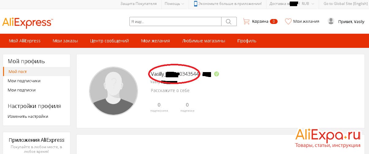 Чтобы искоренить причину всех бед (свой аккаунт на Ali) нужно перейти в раздел «Мой Aliexpress». Не забудьте прежде авторизоваться через тот самый профиль в магазине.