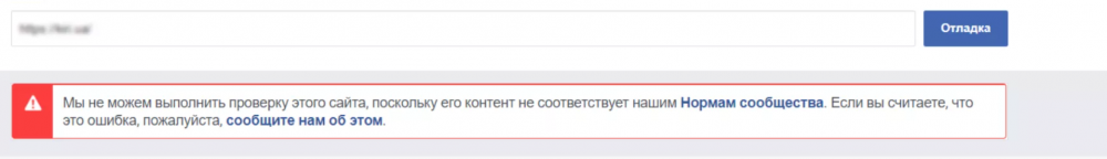 Вероятная причина — Facebook блокирует ваш сайт. Как проверить? Заходим на страницу отладчика репостов Facebook и добавляем url сайта в проверочную строку. Если получается такой результат, нужно писать в поддержку Facebook: