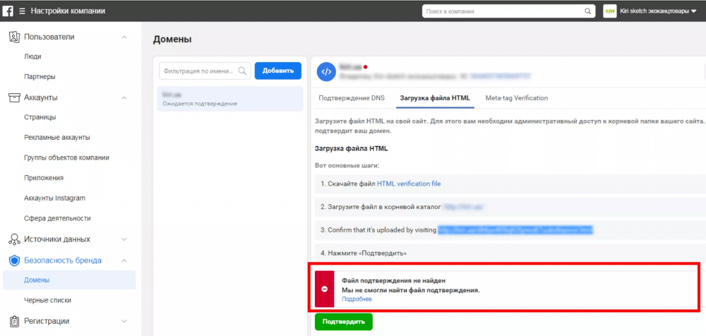 Facebook показывает уведомление о том, что ссылка на сайт в объявлении недействительна или контент сайта носит вредоносный характер. Также не получается подтвердить сайт в Бизнес Менеджере Facebook и загрузить товары в каталог ни с фида, ни вручную.