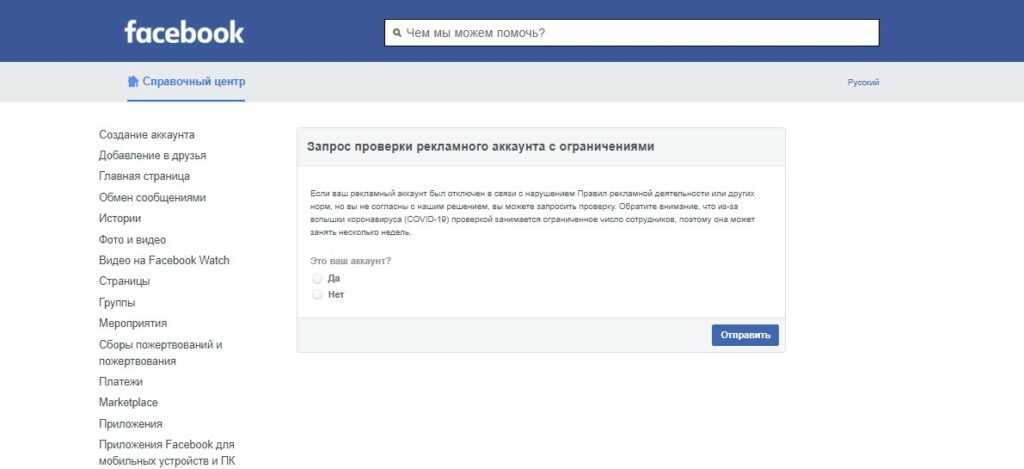 Как восстановить деактивированный рекламный аккаунт Facebook