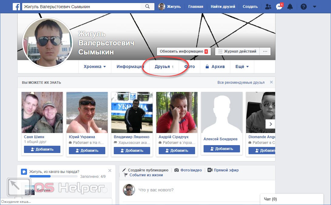 Все так же перейдите на свою личную страницу, откуда хотите осуществлять настройку. Воспользуйтесь поиском по Фейсбук, чтобы быстро найти необходимого друга, после чего перейдите на его страницу.