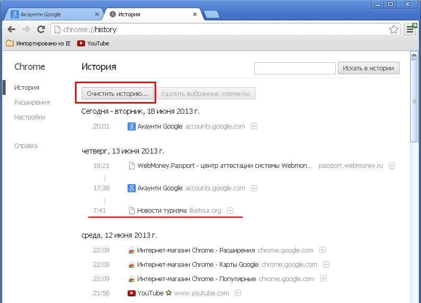 Для того чтобы очистить всю историю просто нажмите на «Очистить историю», как показано на скриншоте.