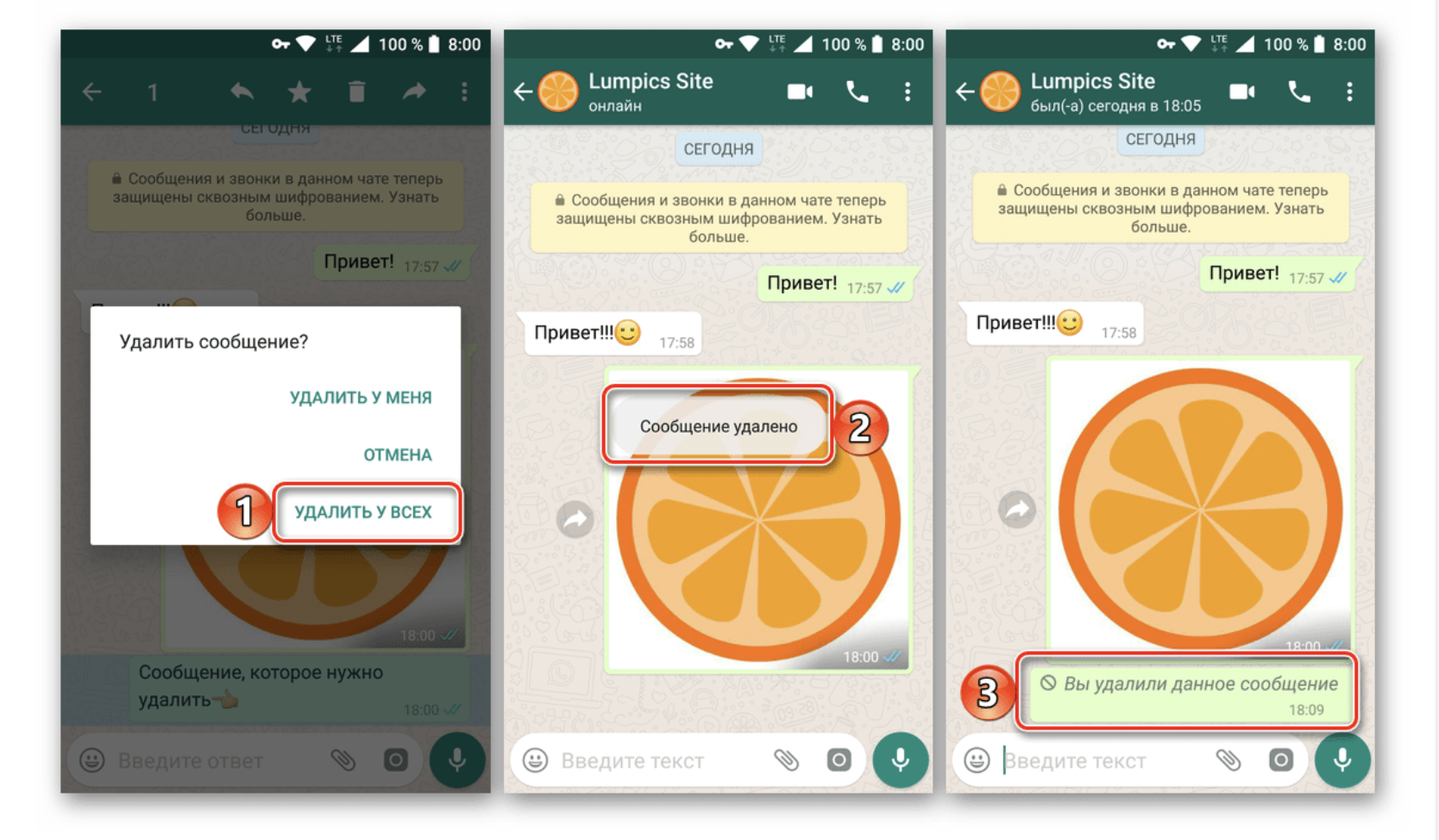 Пошаговая инструкция, как удалить сообщение в WhatsApp для обоих участников чата: