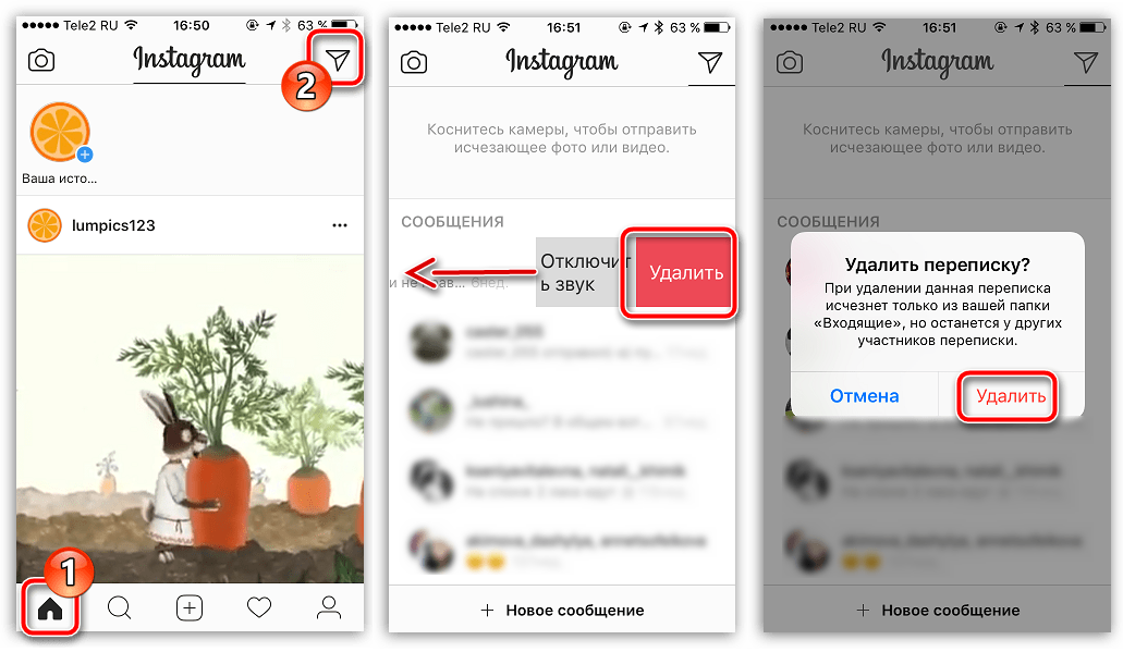 Удалить переписку в Директе Инстаграма на Айфоне очень просто. Для этого необходимо выполнить следующие манипуляции: