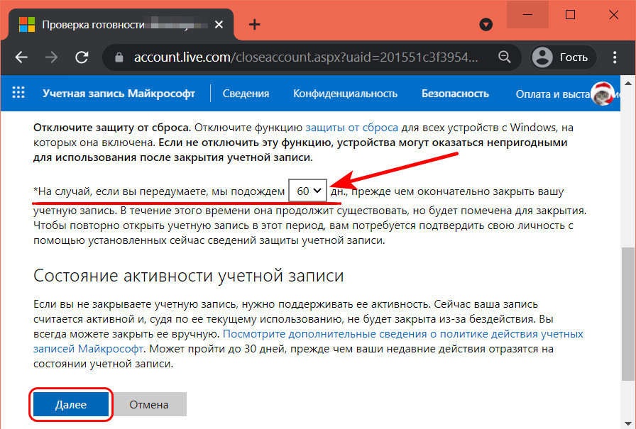 Пользователи, активно использовавшие все ее сервисы потеряют многое, в том числе и контакты скайп. Но, не переживайте, система дает время 60 суток в течение которого можно «одуматься» и отказаться от решения. Но после истечения срока ваша учетка будет удалена безвозвратно.