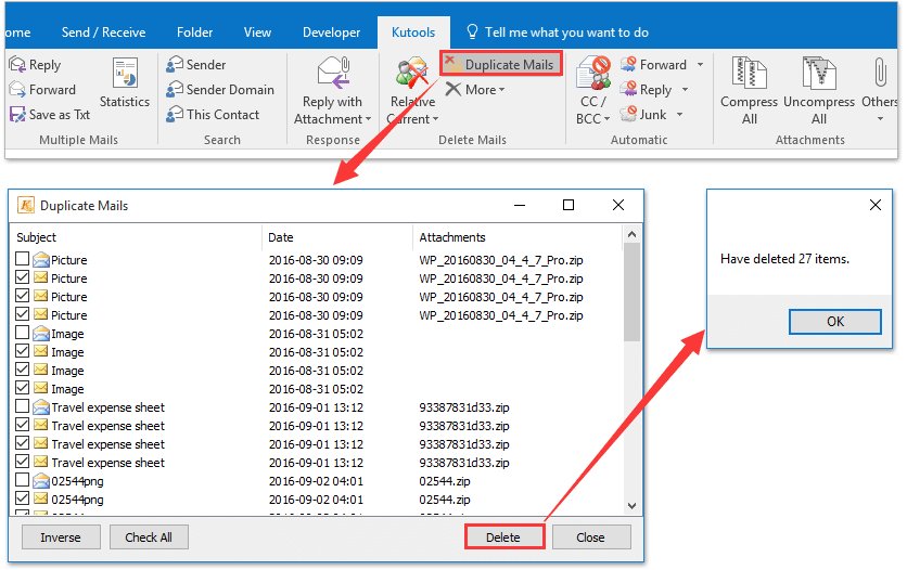 Один щелчок, чтобы удалить все повторяющиеся электронные письма из почтовой папки в Outlook