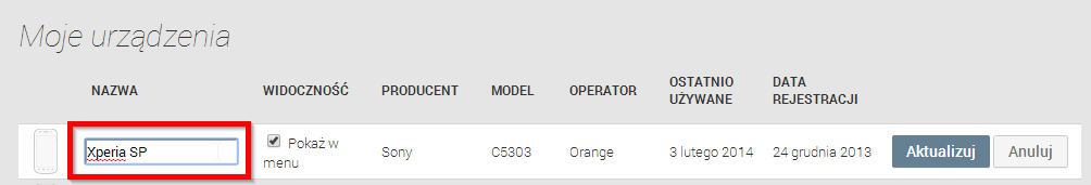рядом с выбранным элементом, а затем вызовите наш планшет или телефон, затем подтвердите изменение имени кнопкой«Обновление» . Это упростит идентификацию устройств, особенно если у нас есть несколько моделей от того же производителя.
