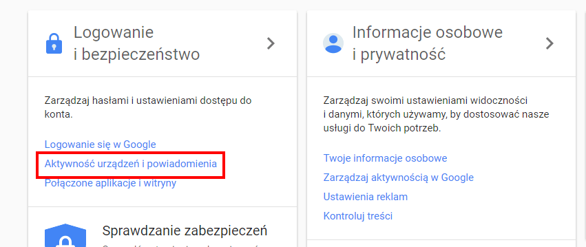 Войдите в свою учетную запись на веб-сайте, затем нажмите кнопку «Активность устройства и уведомления «