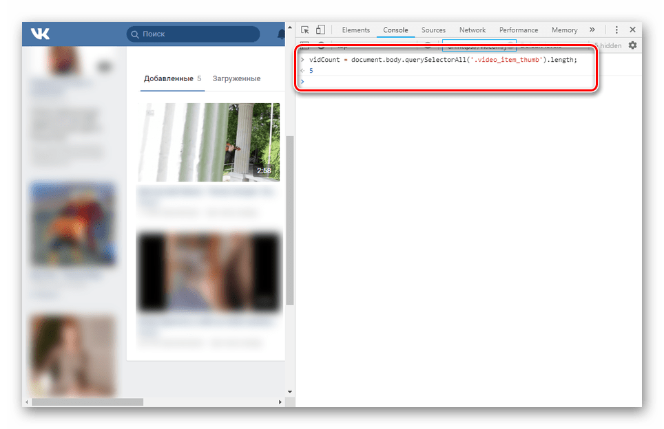 Скопируйте и вставьте на новую строку представленный ниже код. Убедитесь, что после нажатия клавиши Enter в консоли появилось число, равное предположительному количеству роликов на странице.
