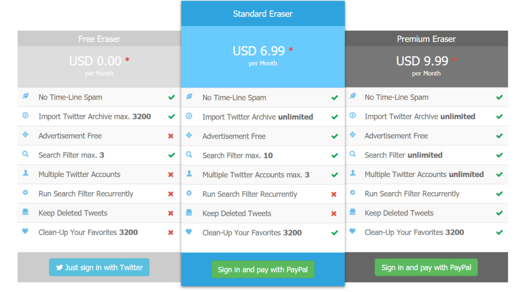 - Standard Eraser allows unlimited deleting of Tweets every single day but restoring old Tweets and saving them is not allowed in this tier.