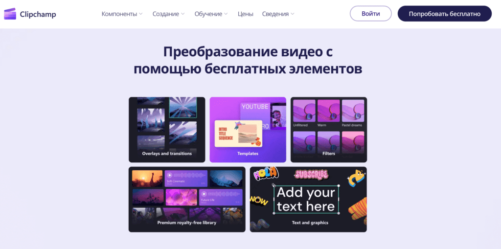 - Для работы в ClipChamp необходимо зарегистрироваться на официальном сайте.