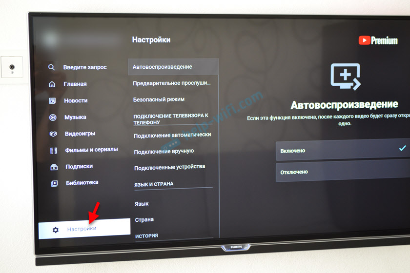 Делаем так: запускаем приложение YouTube на своем телевизоре и переходим в настройки.