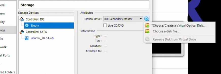 Insert the Ubuntu ISO image into the virtual optical disk drive
