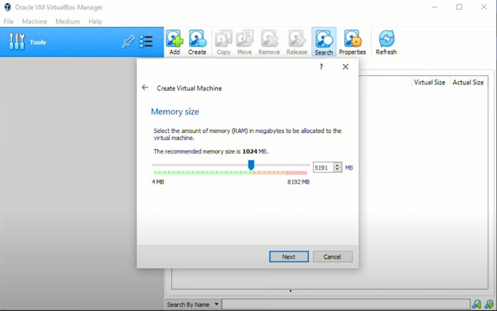 The next step will be selecting the memory size. If you have 8GB of RAM on your system, I would select 2GB as a minimum.