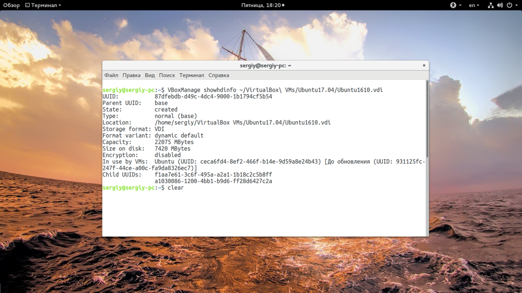 /VirtualBox\ VMs/Ubuntu17.04/Ubuntu1610.vdi в Linux. Давайте посмотрим информацию о нем, чтобы знать текущий размер: