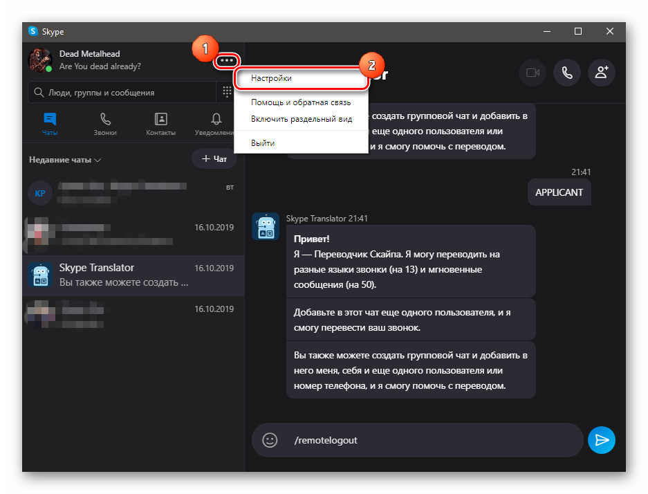 выйти из Skype