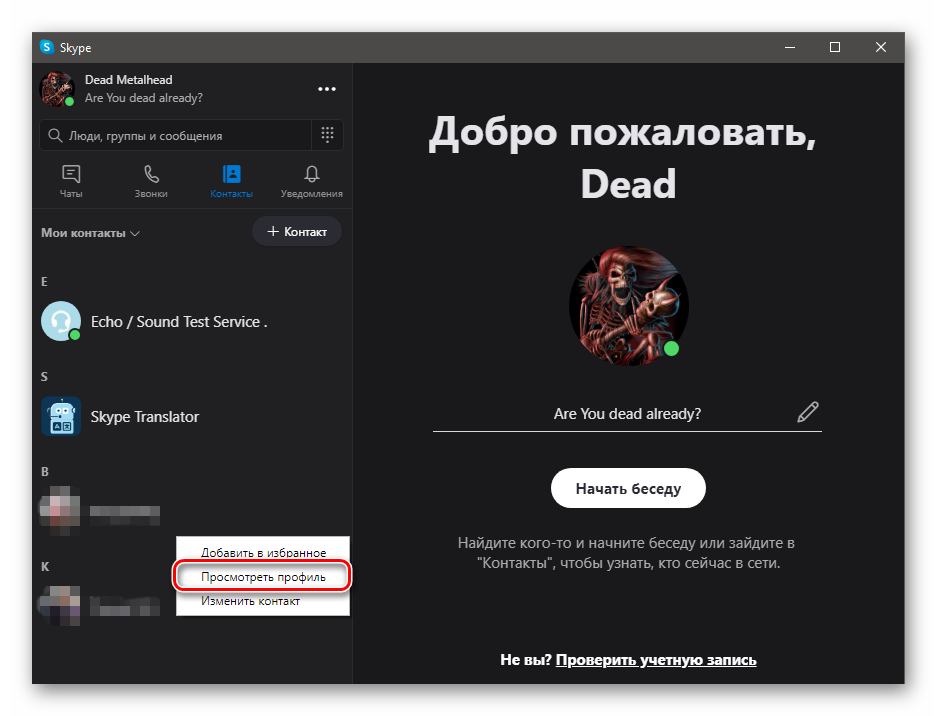 {“smallUrl”:”https://www.wikihow.com/images_en/thumb/3/3d/Know-if-Someone-Blocked-You-on-Skype-Step-4.jpg/v4-460px-Know-if-Someone-Blocked-You-on-Skype-Step-4.jpg”,”bigUrl”:”https://www.wikihow.com/images/thumb/3/3d/Know-if-Someone-Blocked-You-on-Skype-Step-4.jpg/v4-728px-Know-if-Someone-Blocked-You-on-Skype-Step-4.jpg”,”smallWidth”:460,”smallHeight”:346,”bigWidth”:728,”bigHeight”:548,”licensing”:”</div>”}</span>4Нажмите на имя нужного пользователя, чтобы открыть его профиль. Есть несколько характерных признаков, что вас заблокировали:XИсточник информации