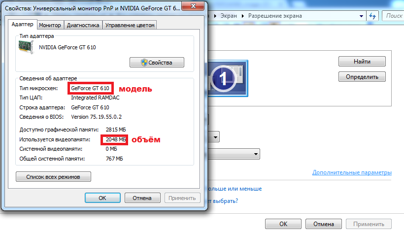 Узнать это можно как и визуально осмотрев видеоплату, так и программно (посмотрев в Windows). Так как я не сторонник, чтобы пользователи сами лазали и разбирали системные блоки (а иногда нужно посмотреть на ноутбуке), то рассмотрим способ программный и самими средствами Windows.