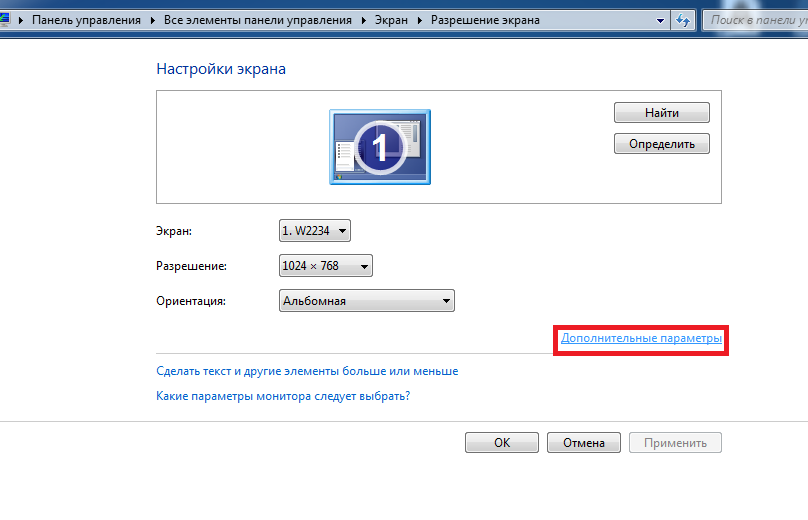 Тип адаптера в дополнительных параметрах экрана Windows 7