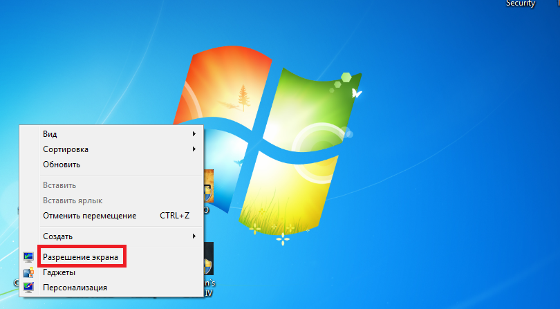 Использование еще одного способа доступно для операционной системы Windows, начиная с 7-й версии. Он заключается клике на Рабочем столе правой кнопкой мышки и выборе пункта «Разрешение экрана».