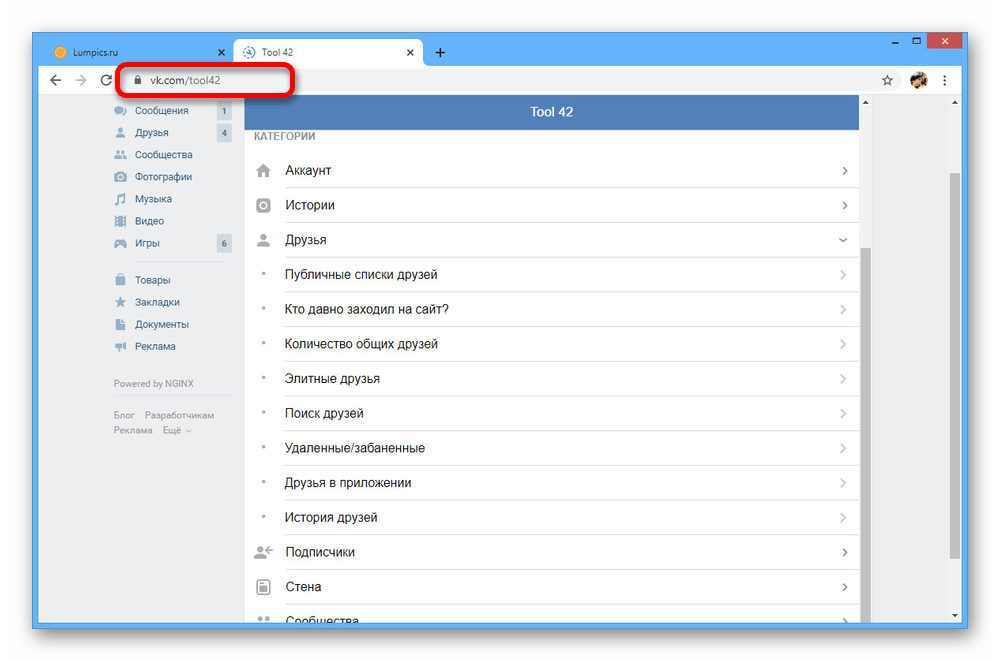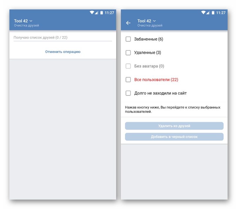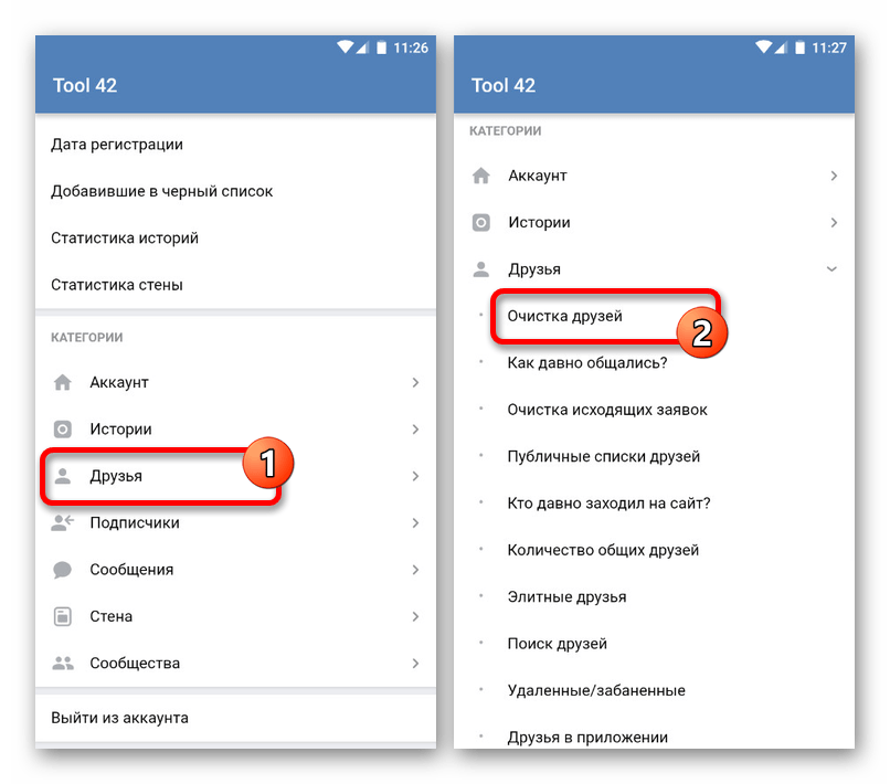 В качестве дополнения не мешало бы упомянуть веб-приложение Tool 42, доступное для выпуска в официальном сообществе ВК и ограниченное только функциями просмотра. Его можно использовать для быстрого поиска имен удаленных пользователей, чтобы позже удалить их вручную.