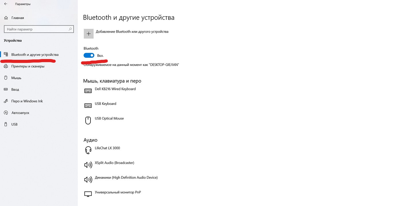 - В открывшемся окне должна быть вкладка «Bluetooth». В редких случаях она может располагаться во вкладке «Другие устройства»;