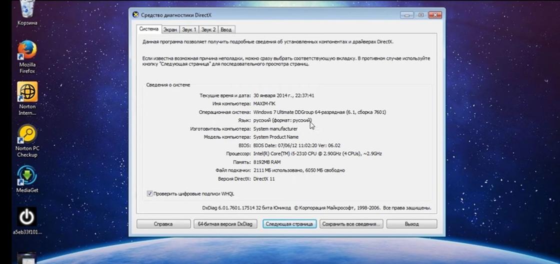 В операционной системе есть много средств для диагностики. Одно из них — DirectX. Программа отображает сведения о компонентах и драйверах интерфейса Microsoft DirectX. Она позволяет проверить работу аудио- и видеокарты, а также установить связь с мультимедийными службами.