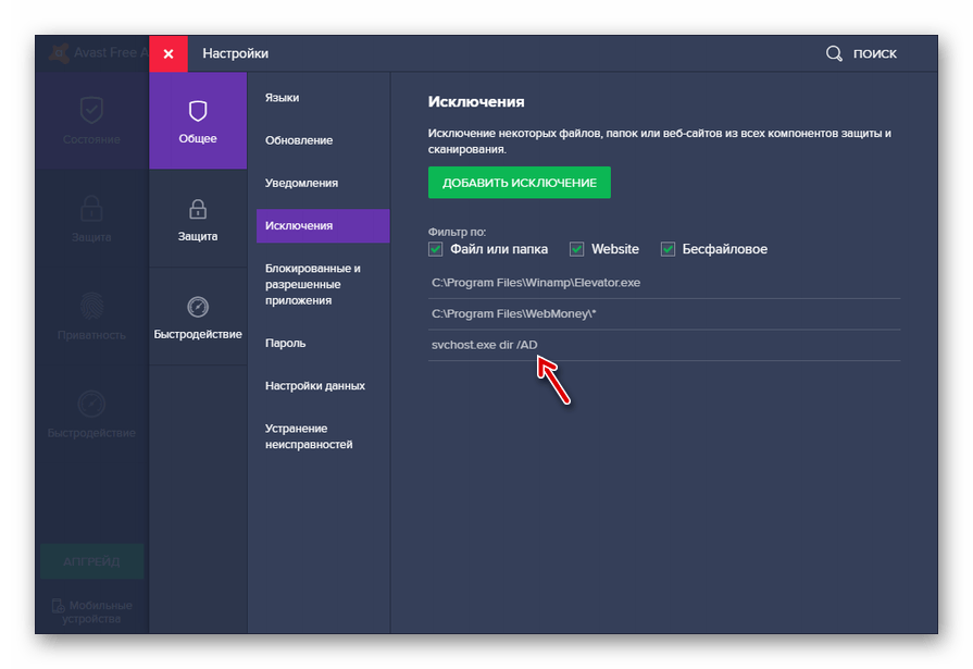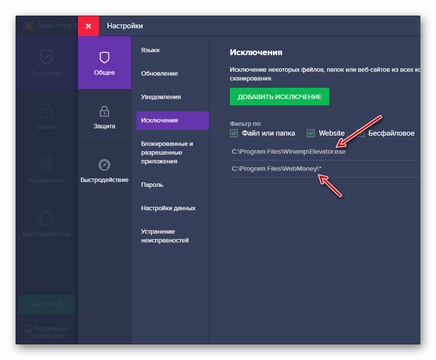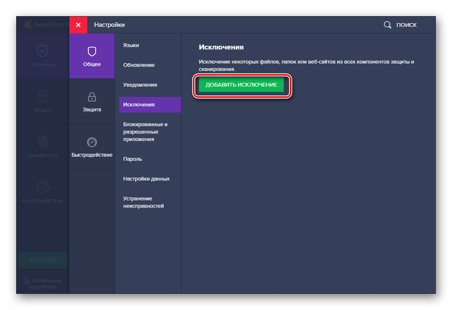 Подробнее: Добавление исключений в антивирусе Avast Free Antivirus