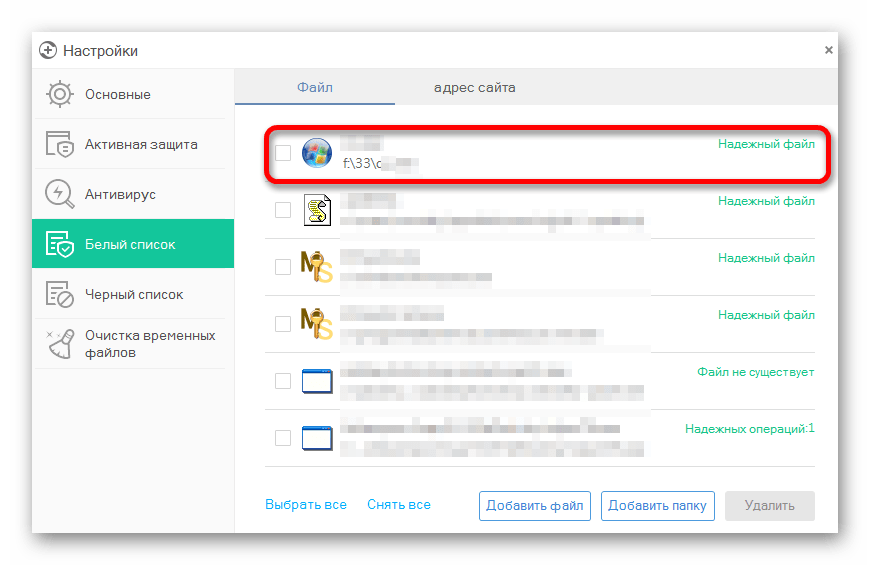 После этого выбранные файлы и папки или веб-адрес будут добавлены в исключения антивируса.
