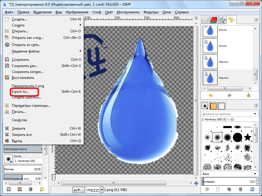 Наконец, вы можете нажать «Файл»> «Экспортировать как», а затем выбрать формат PNG и сохранить его на своем компьютере в формате PNG. Это способ о GIMP удалить фон до прозрачного.