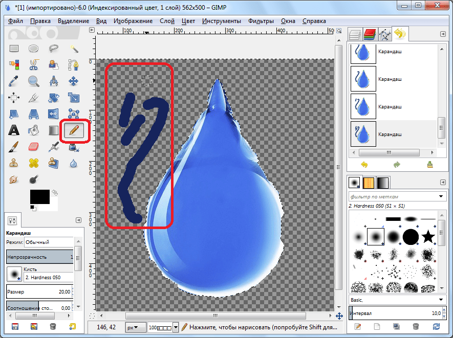 Приложение Гимп имеет в своем багаже очень большое количество инструментов для рисования. Например, инструмент «Карандаш» предназначен для рисования резкими штрихами.