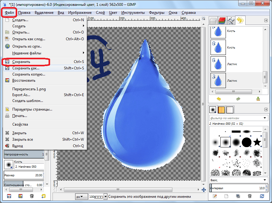 После того как изображение готово, вы должны сохранить его в одном из форматов, поддерживающих прозрачный слой, например, png или gif.