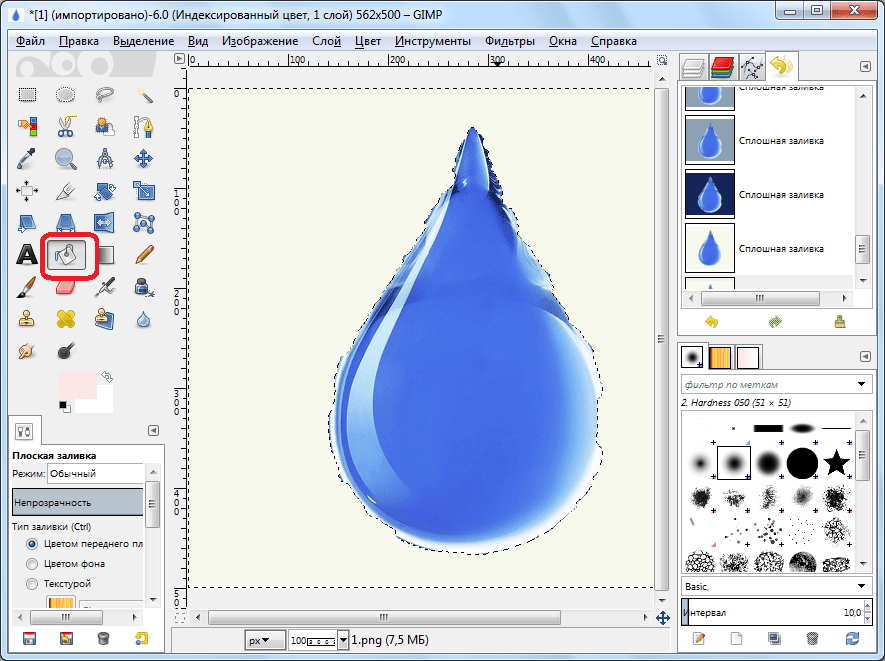 Теперь вам нужно использовать инструмент Fuzzy. Инструмент Fuzzy в основном предназначен для выбора области текущего слоя и изображения на основе цвета. Используя этот инструмент, вы можете легко выбрать фон, который хотите удалить, одним щелчком мыши.