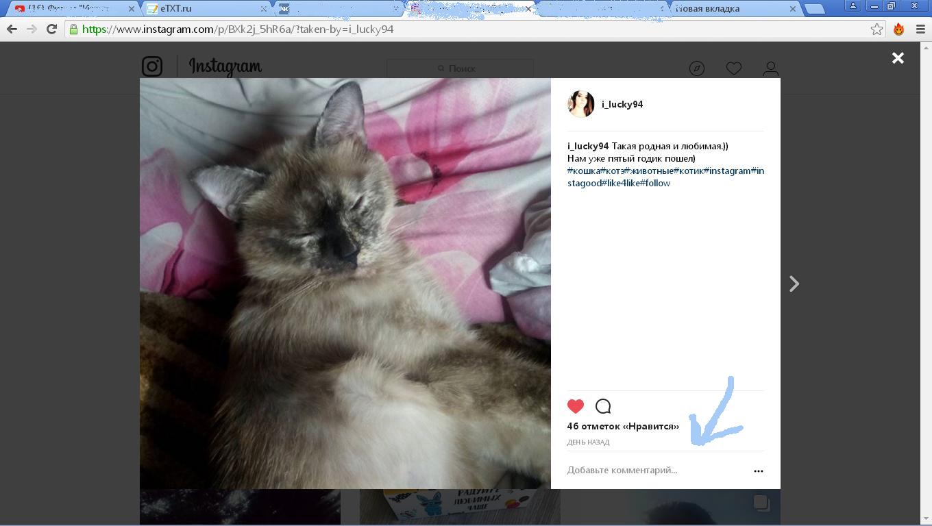 Справа от снимка будет поле с описанием к фото и полем для комментов. Чтобы отметить человека нужно ввести в строку символ «собака» @ и ник человека, которого нужно отметить. После отправки такого комментария, метка становиться активной.