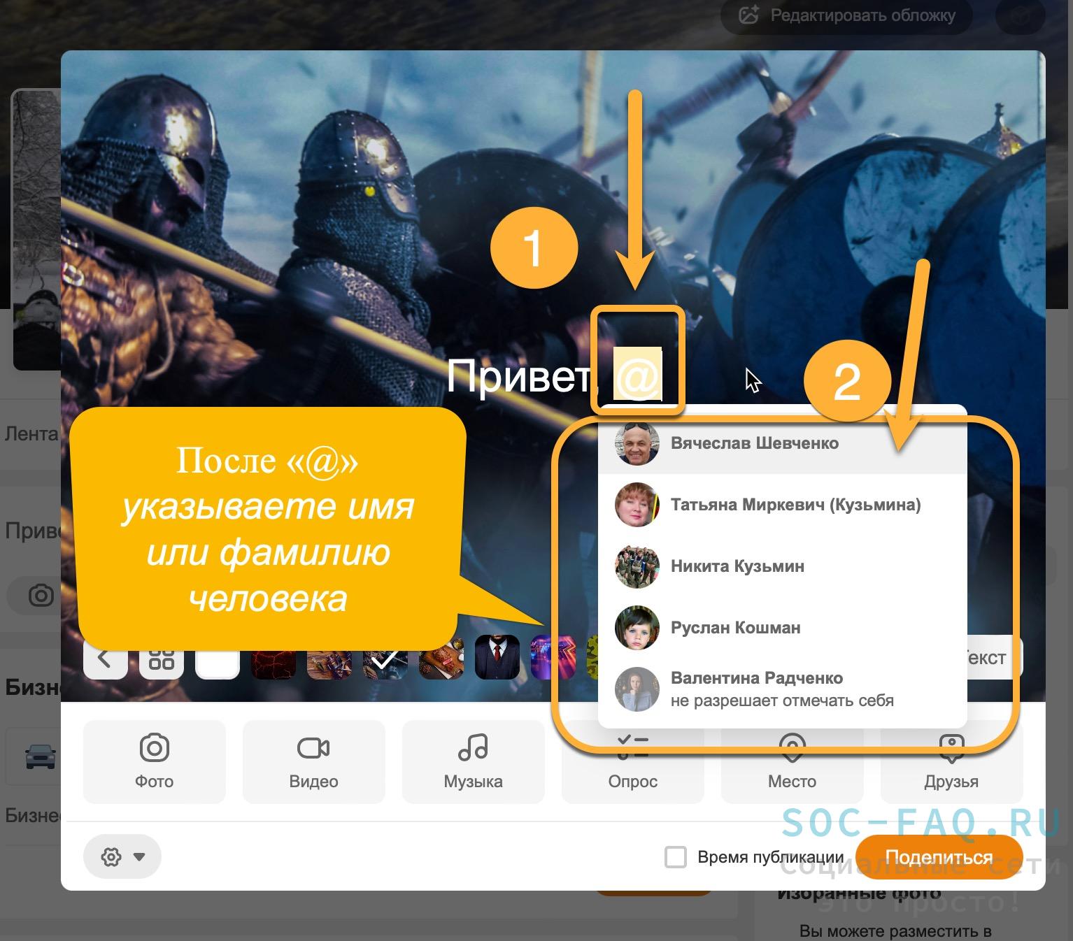 Как отметить друзей на картинке с поздравлением или интересным посланием